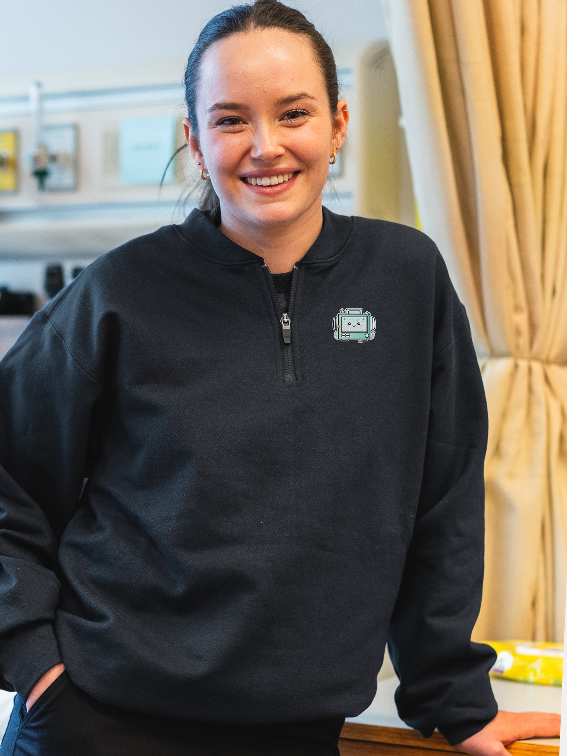 Made for pre-shift coffee runs, charting marathons, or catching up on sleep between shifts. The Softstyle Midweight Quarter-Zip combines easy comfort with everyday polish—crafted from an 80/20 ring-spun cotton/poly fleece with a smooth cotton face and a softly brushed interior.