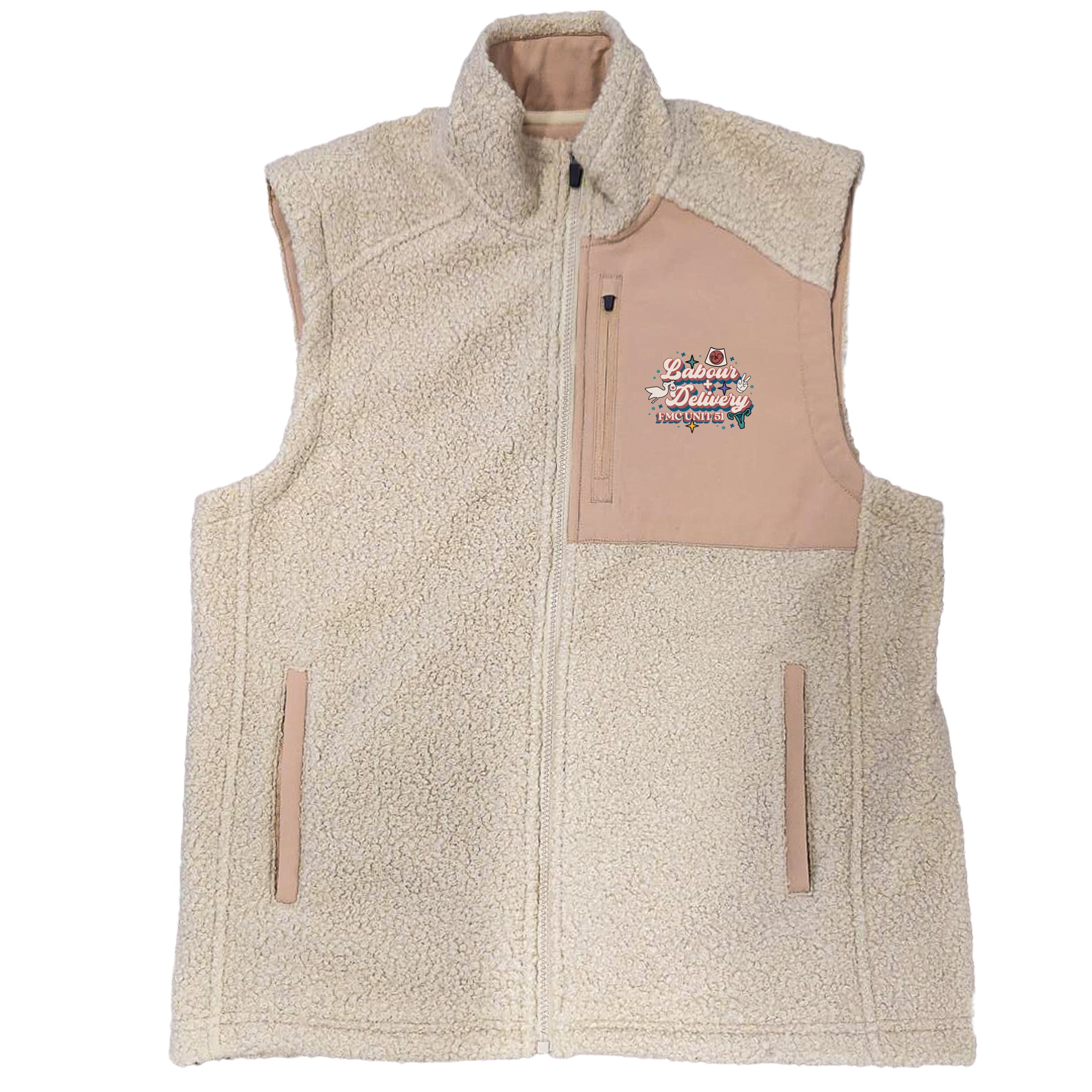 Our Sherpa Vests are the perfect mix of warmth and softness. The soft poly-blend chest pocket is the perfect canvas for your custom team apparel. Featuring three zippered pockets to keep your vitals in check during your shift.