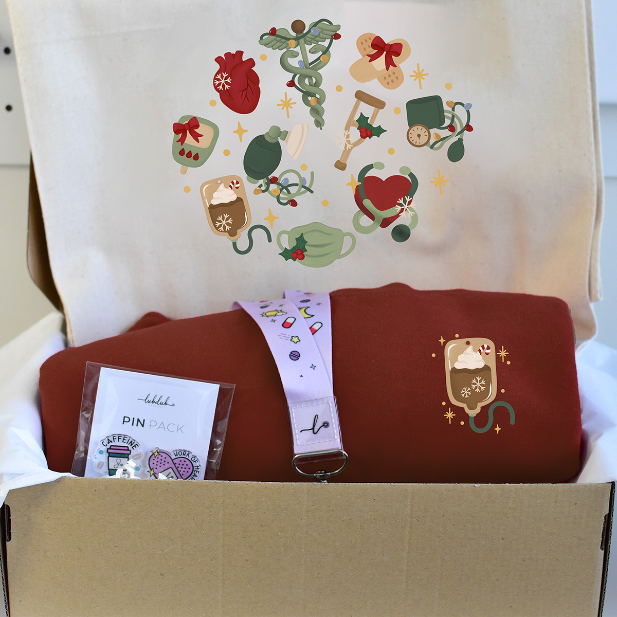 The perfect gift for health care workers. Whether it's for your shift bestie, or maybe even a treat for yourself, this bundle is curated to have all our holiday favorites. Each bundle will come in a box, with a gift receipt, tied with a nice bow so it's ready for gifting.
